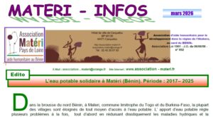 Les thèmes abordés sont : – L’eau potable solidaire à Matéri (Bénin). Période : 2017– 2025 par J.C. Clouet, Président – La commune de MATERI
